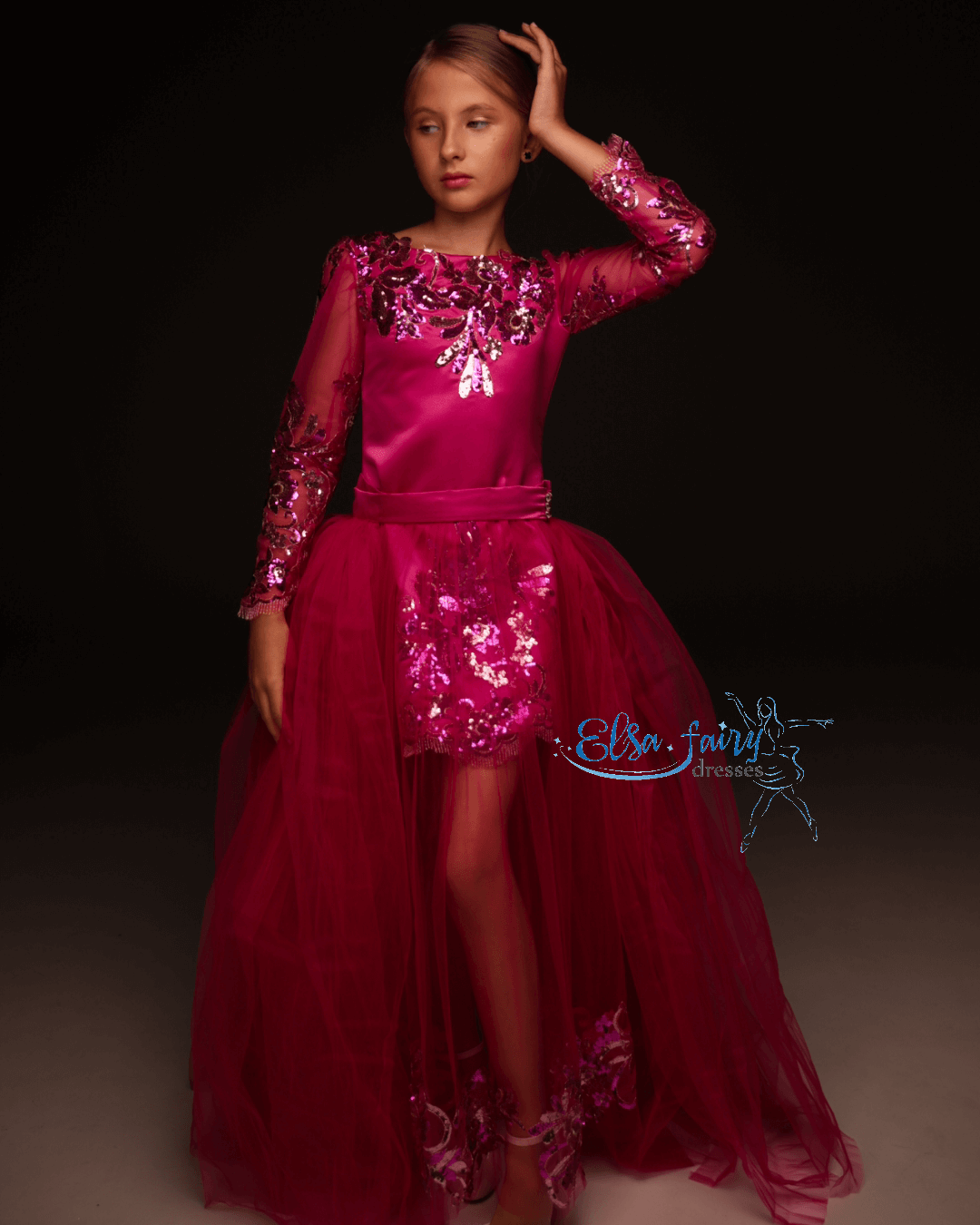 Crafted from high-quality fabric, this dress combines elegance with trendy design. The dress fastens with a vertical zipper and has detachable skirt and train. Specially designed of unique girls dress pattern for your chic special occasions, wedding, birthday, pageant, bridesmaid party, Christmas.